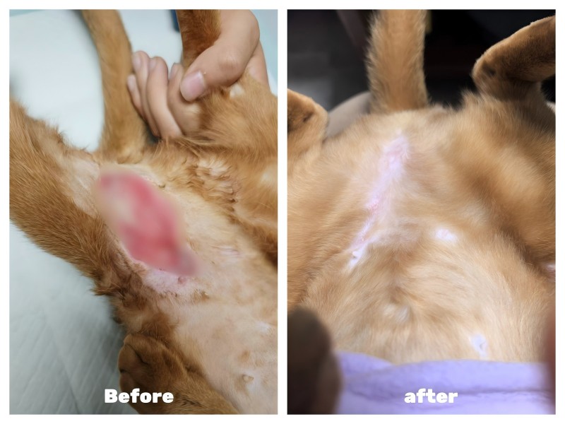Efter en vellykket fødsel udviklede katten Nuonuo uheldigvis brystkirtelruptur. Denne tilstand medførte ikke kun store smerter for Nuonuo, men påvirkede også de nyfødte killinger. Over for dette vanskelige problem brugte veterinærteamet på Ruipai Kenuo Pet Hospital, der stolede på deres rige kliniske erfaring og skarpe faglige indsigt, resolutavanceret VETMEDIX veterinær laserat behandle Nuonuo præcist. Sammenlignet med traditionelle traumebehandlingsmetoder har laserterapi vist mere bemærkelsesværdige effekter. Det har i høj grad forkortet helingsperioden for Nuonuos brystkirtelruptur og reduceret sandsynligheden for sårhelingshyperplasi med betydelige helbredende virkninger. Efter otte dages effektiv professionel behandling er Nuonuos fysiske tilstand blevet væsentligt forbedret, og helingssituationen er god.